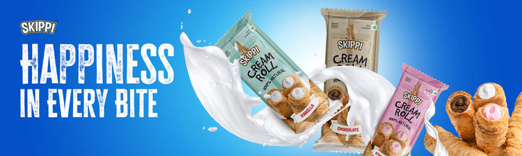 Cream Rolls Skippi Pack of 2,delightful assorted box of 6 rolls(180gm) 2 Vanilla,2 Chocolate & 2 Strawberry Flavor.